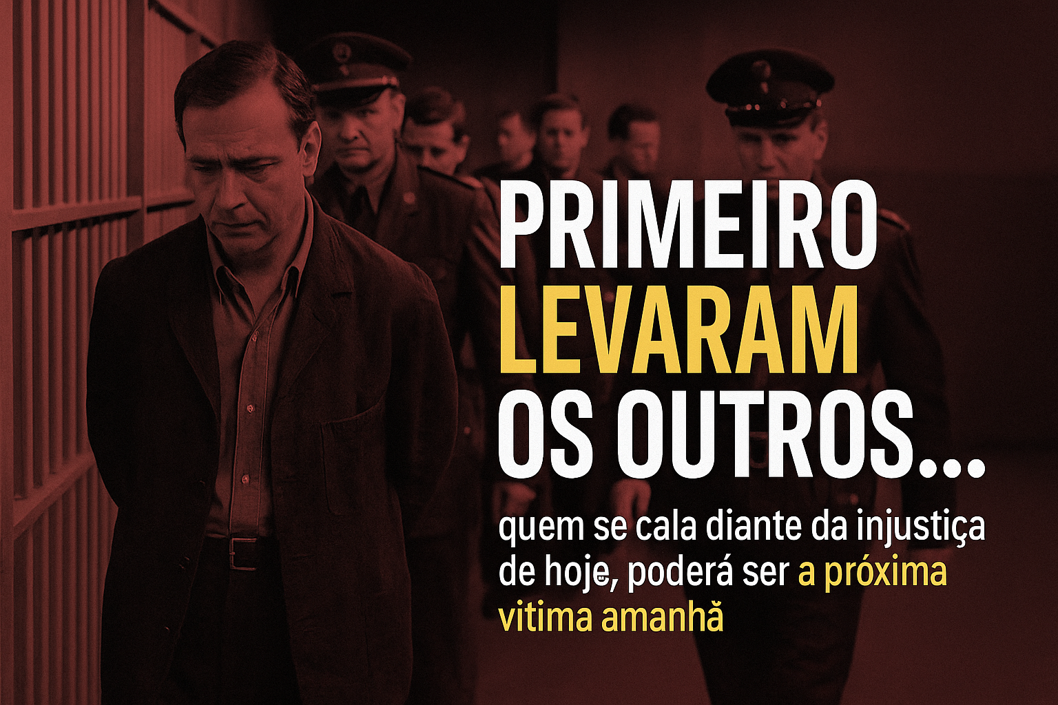 Infelizmente, muitos aplaudem essas medidas porque os atingidos são seus desafetos políticos ou pessoas com opiniões diferentes. Porém, como advertiu Niemöller, quem se cala diante da injustiça de hoje, poderá ser a próxima vítima amanhã.